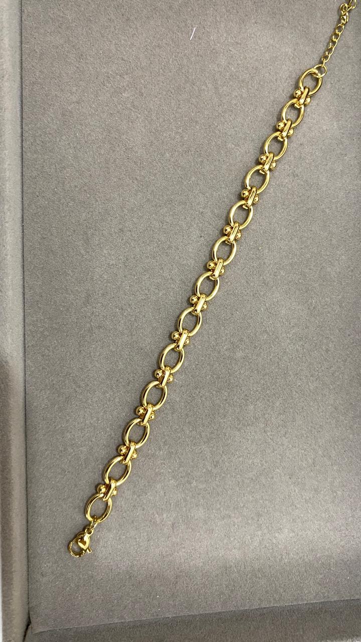 The Interlinked Bracelet is a timeless blend of strength and elegance. Its interlinked golden loops, enhanced with bead details, create a refined yet bold design that makes it perfect for any occasion. Made from premium stainless steel, this bracelet is waterproof, sweat-proof, tarnish-free, rust-resistant, and hypoallergenic, ensuring durability and comfort for everyday wear. Its long-lasting golden finish makes it ideal for stacking with other accessories or wearing solo as a statement piece. A true essential for a modern, versatile jewelry collection.