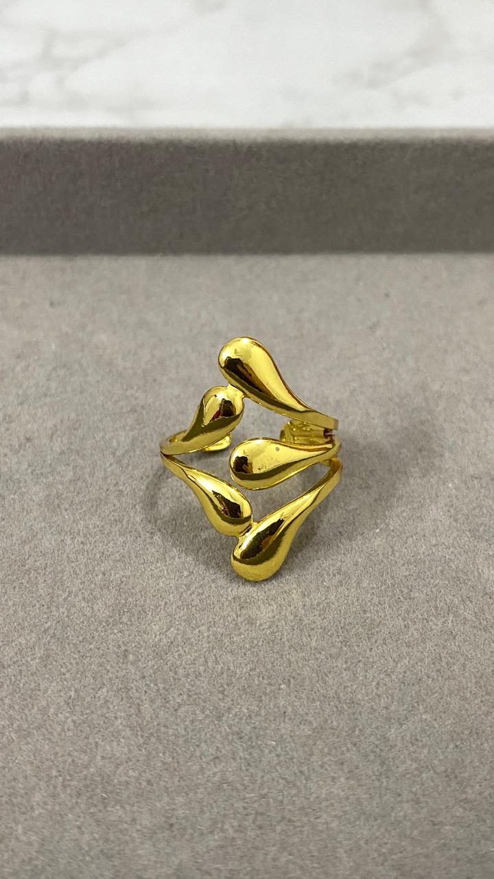 • Design Aesthetic: The ring features an artistic, free-flowing design that resembles molten gold or cascading water droplets. This unique, asymmetric shape offers a contemporary, eye-catching look that is both modern and substantial.
