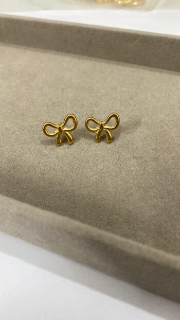 ₨ 750Original price was: ₨ 750.₨ 499Current price is: ₨ 499.The Cupid’s Knot Studs are petite, charming earrings that feature a delicately sculpted bow or ribbon design in a high-polish gold tone. Crafted from durable stainless steel, these studs offer a timelessly feminine look with the confidence of being hypoallergenic and waterproof for comfortable, worry-free daily wear.