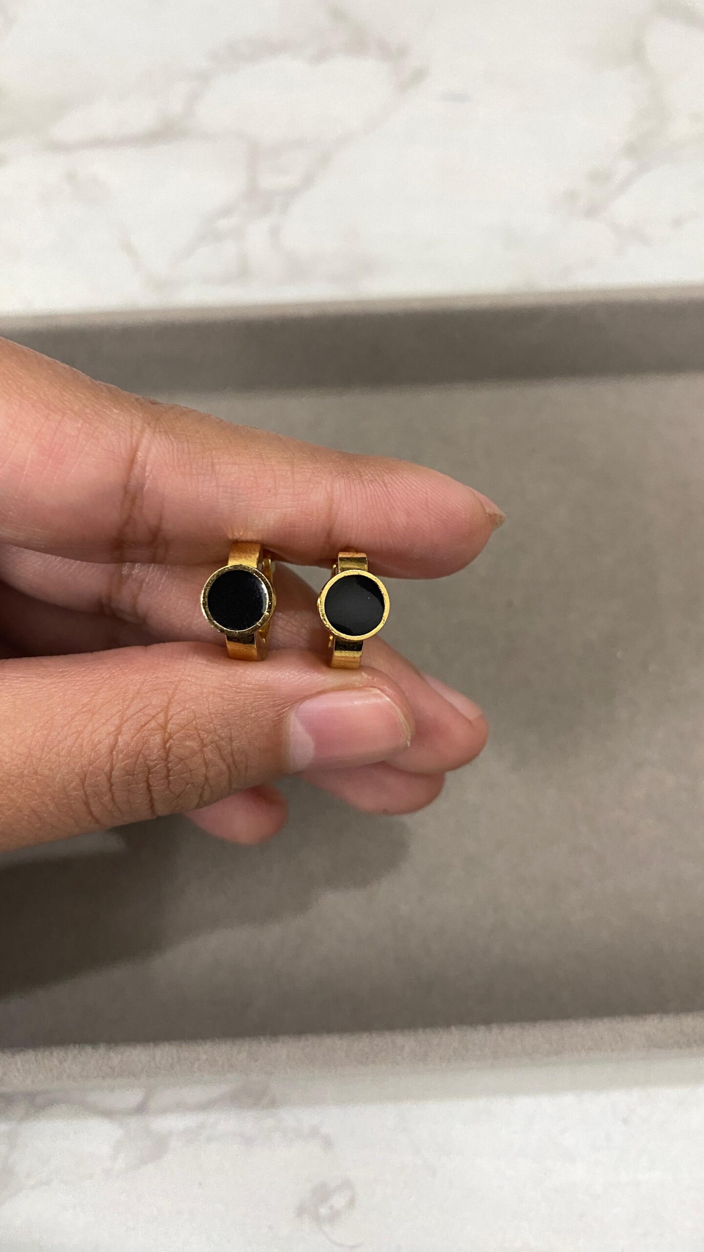 Crafted from high-quality materials, the Mini Circle Huggies are designed to last, ensuring they maintain their shine and durability over time. Their compact and lightweight design provides a comfortable fit, allowing you to wear them all day with ease.