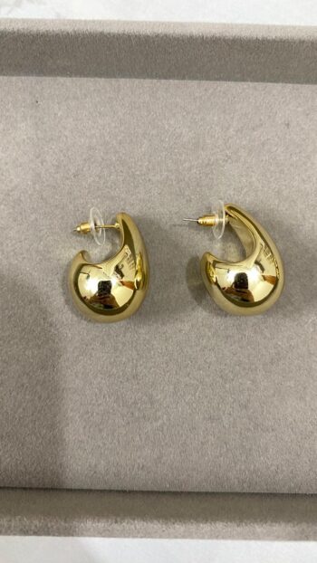 ₨ 630Original price was: ₨ 630.₨ 450Current price is: ₨ 450.Effortlessly chic and bold, these chunky golden tear drop earrings add a touch of modern sophistication to any look. Their polished, domed design makes them a lightweight yet striking statement piece perfect for everyday glamour or special occasions.